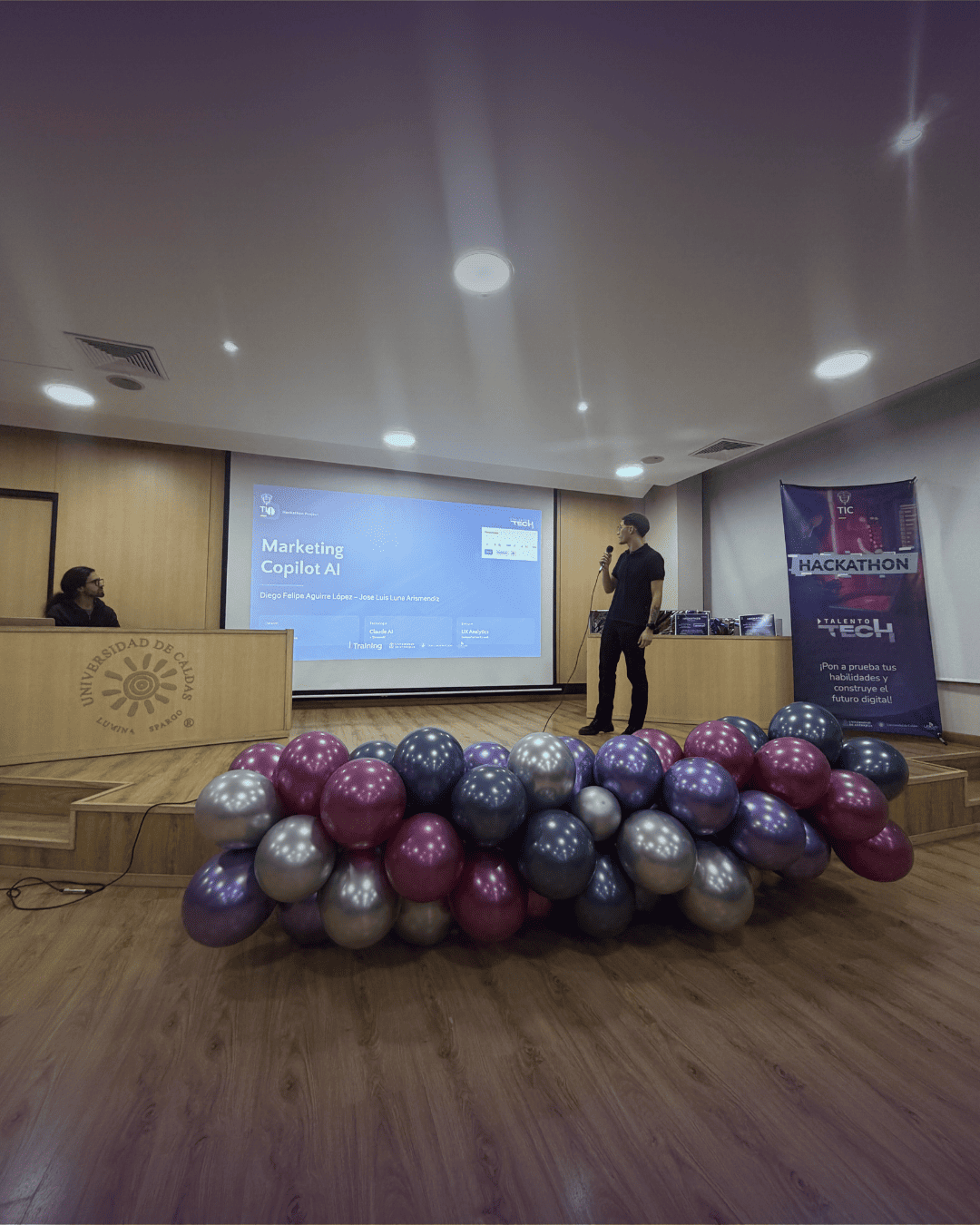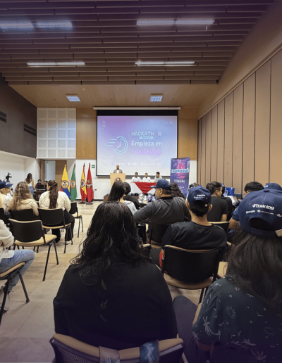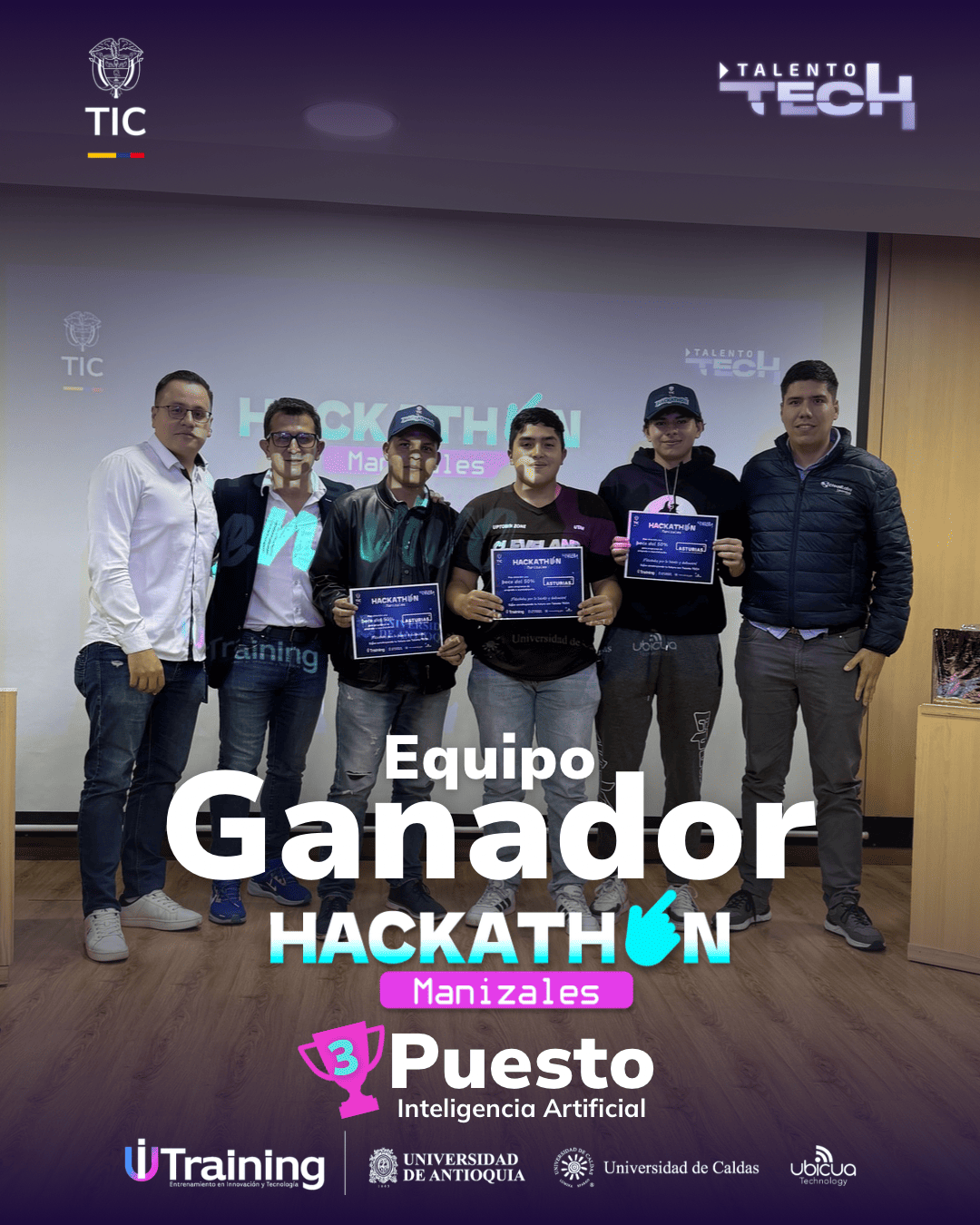El viernes 27 de marzo, Manizales fue el epicentro para desarrollar el reto en Inteligencia Artificial y la Universidad de Caldas el escenario principal. En esta jornada participaron cerca de 45 campistas tech, organizados en 10 equipos presenciales y 7 virtuales, quienes vivieron una intensa jornada de creación, ingenio y trabajo colaborativo durante aproximadamente 8 horas.