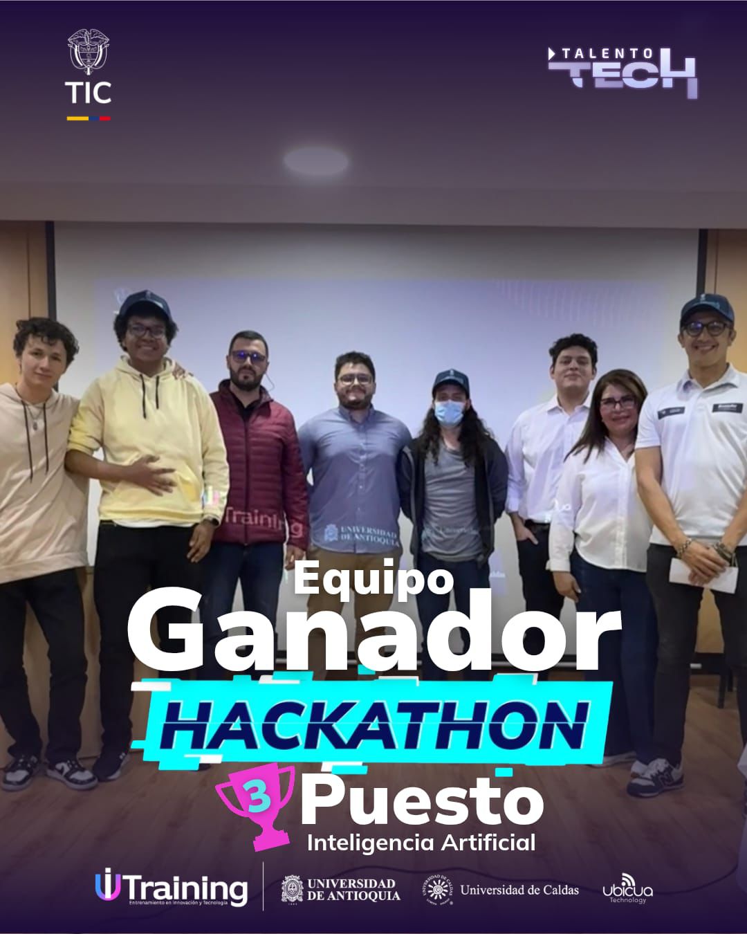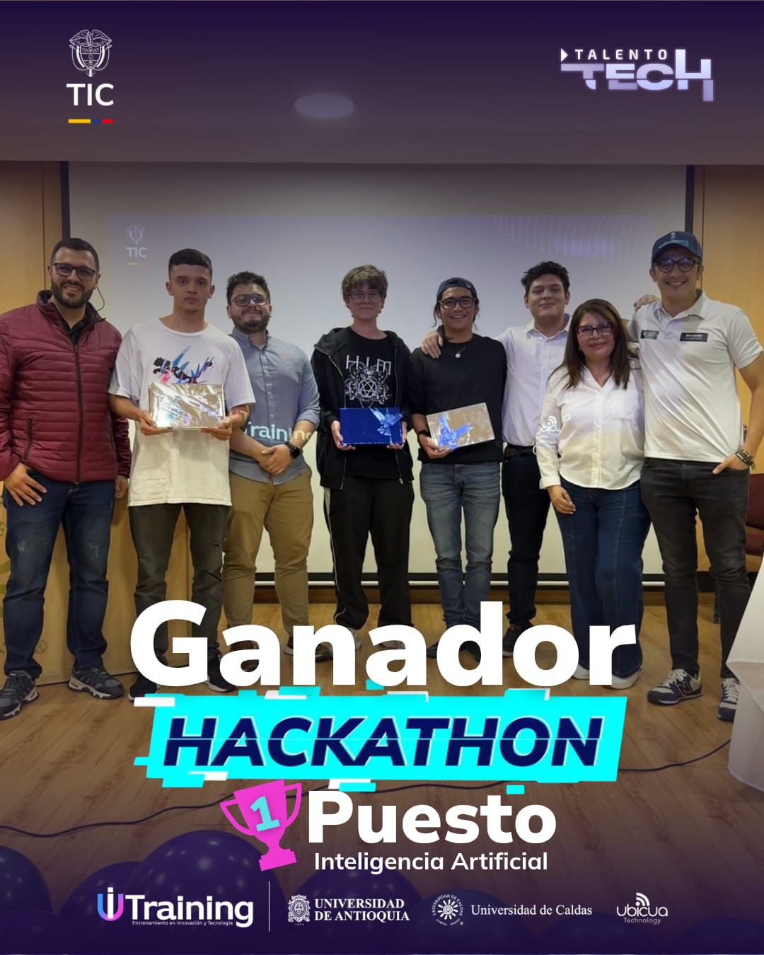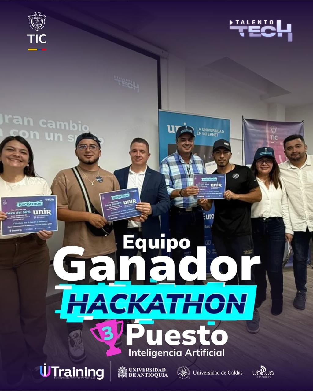Finalmente, Juan David Reyes, campista del Bootcamp de IA y ganador en Caldas, compartió: “Este es un gran paso adelante en la escala laboral, ya que fue una gran primera experiencia para saber como es el mundo laboral, donde uno tiene un problema y tiene que mirar cómo lo soluciona, como lo hace lo más rápido posible con un equipo, teniendo una buena comunicación y un buen trabajo en equipo. Invito a todos los campistas a que sigan aprendiendo sobre Inteligencia Artificial y habilidades tecnológicas, ya que son ramas fundamentales, todas las empresas las están utilizando, aparte de un plus es una necesidad”