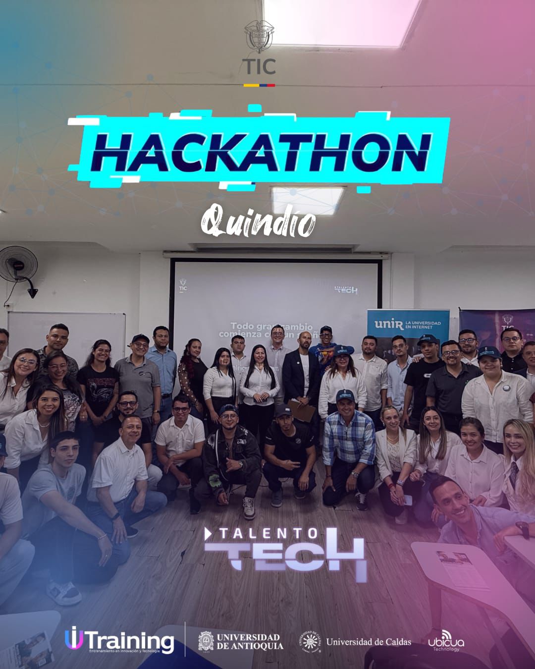 La Hackathon Talento Tech llegó a la Región 2 para reunir el talento, la creatividad y la pasión por la tecnología de los Campistas Tech. El pasado viernes 21 de noviembre Armenia abrió sus puertas a 9 grupos en modalidad presencial que desde la Universidad del Quindío se sumaron a esta jornada y en modalidad virtual participaron 8 equipos adicionales, quienes aceptaron el desafío de resolver el reto en Inteligencia Artificial y Análisis de Datos planteado por Visualbit, Agencia Digital del departamento. Un espacio donde cerca de 47 campistas pusieron a prueba lo aprendido durante su formación para crear soluciones innovadoras y demostrar el alcance de sus habilidades.